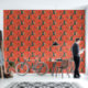 This colorful cartoon-style Christmas tree pattern has a customizable orange background.