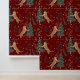 Christmas Trees & Tigers Pattern On Dark Red Wallpaper
