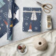 Christmas Tress, Snowman, and Snow With Blue Back Wrapping Paper