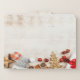 Christmas tree,presents ,gold snowflakes on wood texture with your name.