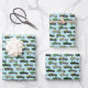 Christmas Trucks Xmas Trees Wreaths Grayscale Blue Wrapping Paper Sheets