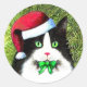 Christmas Tuxedo Cat with Bow Classic Round Sticker