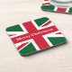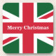 A festive Union Jack in red green and white for Christmas on a coaster set that reads Merry Chistmas