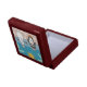 This product is made with beautiful mahogany wood, the inside is lined with white satin. The hinges are very sturdy and keeps a tight close on the box. The pattern tile is wonderful It's truly is an exquisite product. This is a gift for anyone and for any occasion. A fine wooden piece to display on your furniture anywhere in your home. The printing accented the design on the box very well. Very pleased with the Font.