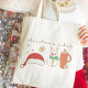 This charming tote bag features a hand-drawn illustration of a Santa hat, a cheerful snowman, a warm cup of cocoa, and some festive flowers. It’s perfect for spreading holiday cheer. A handwritten phrase that says "Christmas vibes" is featured at the top of the bag, adding a touch of holiday spirit. The cute, simple design makes it great for carrying gifts, holiday essentials, or as a thoughtful gift for Christmas enthusiasts!