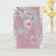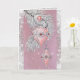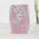 Vintage Christmas card with pink teardrop shape ornaments, decorated with silver glitter and shiny pink gems. Beautiful, elegant card for all your holiday mailing.