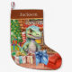 Christmas watercolor dinosaur add name Small Christmas Stocking