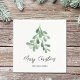 These festive napkins are decorated with watercolor green mistletoe and say Merry Christmas in stylish typography.