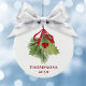 Christmas Watercolor Holly Berries Greenery Simple Ceramic Ornament