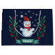 Christmas Watercolor Snowman Custom Navy Blue Large Gift Bag