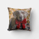 Christmas Weimaraner Dog With Red Bow Throw Pillow