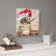 Christmas, Whimsical Cat Whit Santa Hat Square Wall Clock