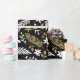 This holiday wrapping paper features a botanical pattern of white, black and dark gold leaves and flowers. Use for gift wrap or for paper crafts including decoupage. From our hearts to yours Happy Holidays!
