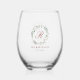 Christmas Winter Berry Wreath Family Name Monogram Stemless Wine Glass
