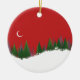 Bring in the Christmas mood with this Christmas Woods Scene Circle Ornament - fir trees with snow below and crescent moon above.