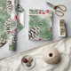 Christmas wrapping paper featuring pine cones, bows, holly berries, hearts, snowflakes. Beautiful seasonal Christmas gift wrapping paper for the Christmas season.