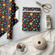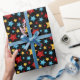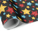 This wrapping paper is shown with a festive holiday colorful stars print.