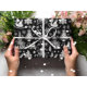 This Christmas wrapping paper features a lovely black and white pattern in French toile style.
