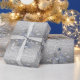Christmas Wrapping Paper Blue Silver Tree Hearts