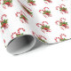 This Christmas wrapping paper is shown with a cute holiday candy canes print.