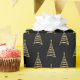 This holiday wrapping paper is shown with a gold Christmas tree print.
