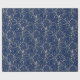 Holiday gift wrapping paper shown with a fancy pretty Silver-tone swirls print on a deep Blue background color. Choose your background color.