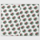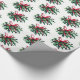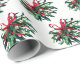 Holiday gift wrapping paper shown with a festive mistletoe print on a white background.