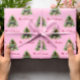 This Christmas wrapping paper features a lovely watercolor illustration of a pine tree, that has simple and elegant red decorations. It creates a modern, minimalist pattern in a light pink background.