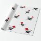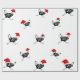 Christmas wrapping paper is shown with a fun group of black and white chickens running around wearing [in one way or another] red Santa hats. Printed on over white background. Has Gift tags that are peel n stick to match in Gift Tags-Holiday folder.