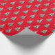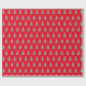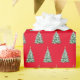 Holiday gift wrapping paper shown in a red background color with a festive Christmas tree print.