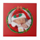 Christmas Wreath Add Your Photo & Red Background Ceramic Tile