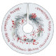 Christmas wreath with branches, greenery and red berries Brushed Polyester Tree Skirt. This festive decoration showcases a Christmas wreath made of natural branches, greyih green greenery, and vibrant red berries. Surrounding the wreath is a cheerful greeting that reads 'Merry Christmas' in a rich, deep red hue, adding a warm and inviting touch to your holiday decor. The accompanying brushed polyester tree skirt enhances the overall aesthetic, providing a cozy and elegant foundation for your Christmas tree.