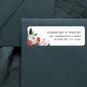 These simple and elegant holiday wedding return address labels feature a stylish, watercolor bouquet made up of modern greenery and red and white Christmas flowers on a white background.