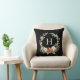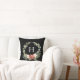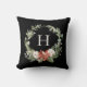 Rustic Watercolor Christmas Monogram Wreath, Greenery, Floral and Cotton, Black Holiday Throw Pillow.