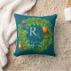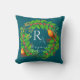 Christmas Wreath Monogram Ocean Blue Throw Pillow