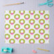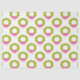 Deck the halls with this cheerful Christmas wreath pattern, featuring scalloped green wreaths adorned with bright pink bows and red ornaments, all set against a crisp white background. The symmetrical layout and bold color palette give this design a modern twist on classic holiday charm.