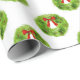 Festive Christmas theme wrapping paper featuring watercolor illustration of a green wreath with red berries and a bow.