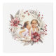 Christmas wreath, red flowers and berries photo cube