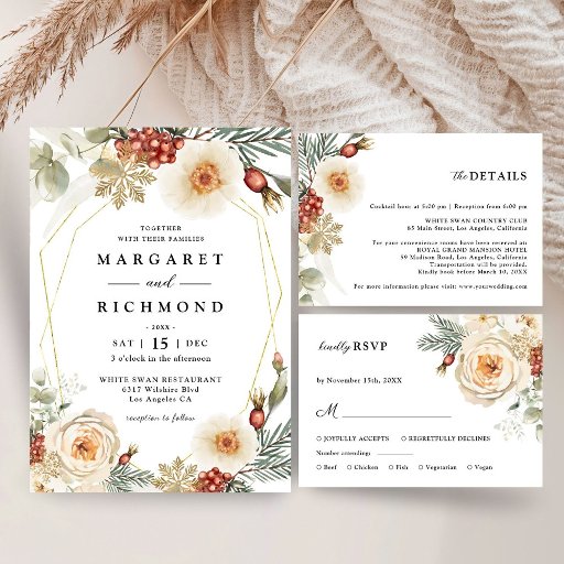 Christmas Wreath Rustic Floral Winter Wedding Invitation