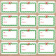 This product is a sheet of Christmas 'To and From' sticker labels, each featuring a blank writing area framed by a green botanical wreath border and accented with a small red bow at the top. It would be searched for using terms like "Christmas to and from stickers," "holiday gift labels," "wreath gift tags stickers," "red and green Christmas labels," and "printable holiday sticker sheets." It fits directly into the art licensing themes of "Holiday/Seasonal" and "Stationery & Paper Goods," specifically utilizing the classic Christmas motifs of "Wreaths," "Foliage/Botanicals," and the "Red and Green Color Palette" in a traditional, cheerful style suitable for mass-market holiday packaging.