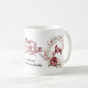 This festive Christmas mug showcases a beautiful wreath adorned with vibrant red flowers, lush berries, and greenery in a harmonious blend of red and beige tones. At the heart of the mug, the phrase 'Merry Christmas' is elegantly displayed in a sophisticated deep red font, infusing the design with a sense of warmth and charm. Furthermore, the word 'Joy' is artfully integrated within the wreath, serving as a delightful reminder of the happiness and cheer that this magical season brings to our lives.