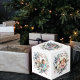 Christmas wreath with berries and flowers photo cube. This photo cube is adorned with a lovely Christmas wreath frame, which is embellished with branches, white flowers, red berries, and green leaves. The cube itself is designed to showcase five distinct photos on its sides within the wreath frame, allowing you to display cherished memories or festive moments. With its intricate details and festive elements, this photo cube is a perfect addition to your holiday decor.