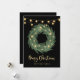 Christmas Wreath with Gold String Lights on Black Holiday Card
