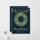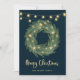 Christmas Wreath with Gold String Lights on Blue Holiday Card