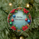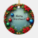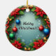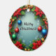 Christmas Wreath with Poinsettias Ceramic Ornament