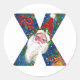 CHRISTMAS X LETTER / SANTA CLAUS WITH RED RIBBON CLASSIC ROUND STICKER