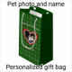 This gorgeous christmas gift bag is a loving celebration of your faithful friend. There is a tartan-style background pattern in red, green and white. Upload your favorite photo and add a name and a greeting. The photo is framed in a red heart with an edging of white pawprints. The design is printed on both the front and back of the bag.