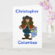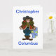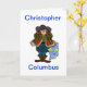 Here's the other version we have of Christopher Columbus. We didn't give him any moustache this time and he looks a little younger. We did give him his map per se. Apparently, it didn't work. So on this card we spoof the fact he got lost (and history recorded it!) However, you're free to change the wording and customize this to say whatever you'd like it to. TO CUSTOMIZE: (1) Click the "Customize It button. (2) Click "Add Text. (3) Type What You Want (3) To change the font styles, click the "F" box and a pop-up menu will appear with lots of font designs. (4) To change the font color click the black box and another pop-up menu will appear with lots of colors. (5) To size text (or images) use the + and - buttons. (6) To move text (or images) around, use the arrow keys or... go to the top left and click into the "Design" mode. Your mouse then makes moving things easier.