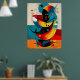 Swirling geometric energy meets Bauhaus clarity in this red, cyan, and golden composition. Spirals and intersecting lines create a sense of cosmic movement and mid-century elegance. Perfect for bright modern interiors, studios, or galleries seeking bold color and precise rhythm.