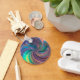 Immerse yourself in a mesmerizing and dynamic abstract design centered around a captivating vortex. A vibrant explosion of iridescent colors, including radiant teals, deep purples, vivid pinks, and glowing oranges, swirl together in a fluid, harmonious motion. The composition has a glossy, liquid-metal quality, enhanced by streaks of light and shimmering particles that evoke a sense of cosmic energy and stardust. This energetic and colorful artwork draws the eye inward, creating a hypnotic and visually stunning experience.